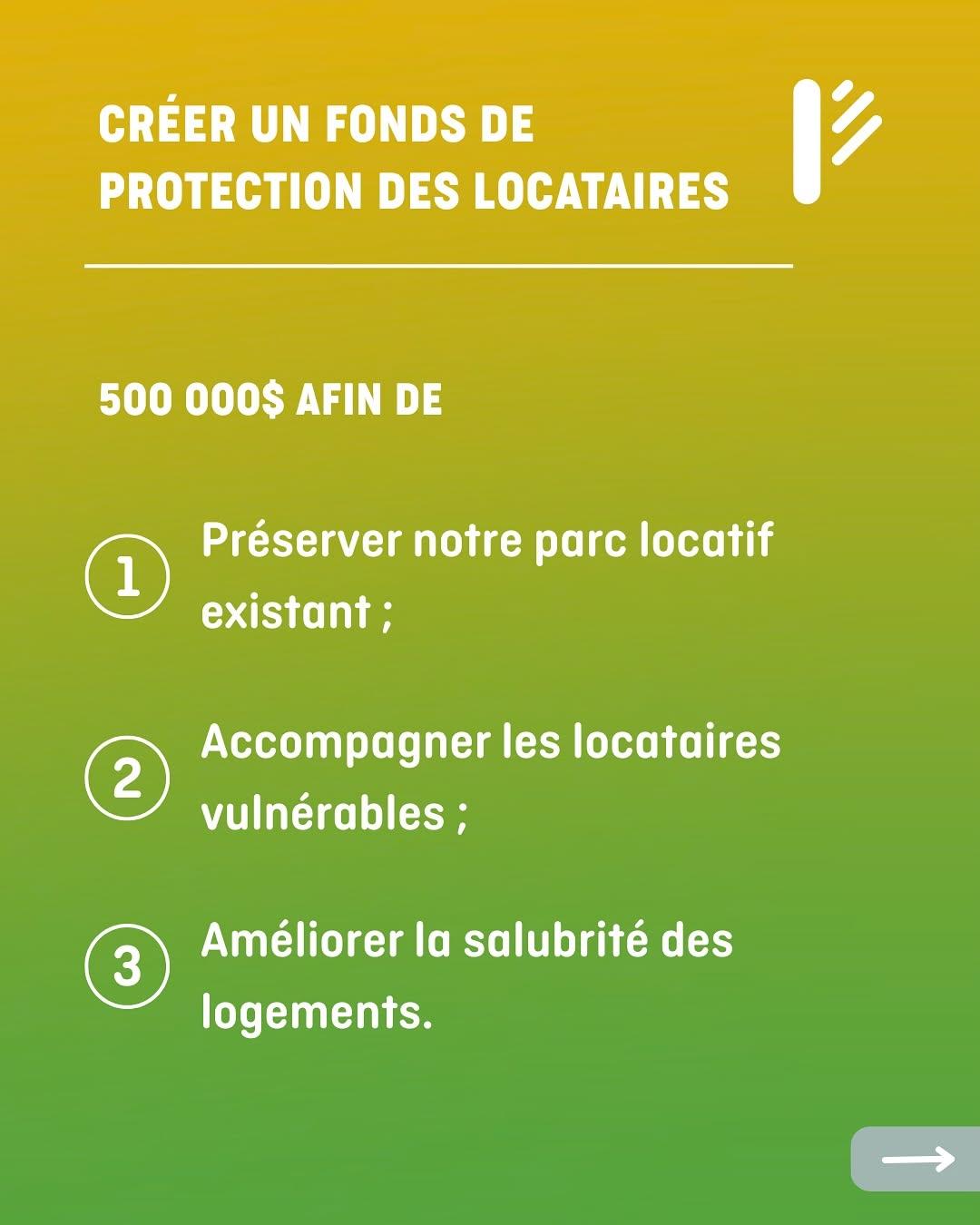 2- Créer un Fonds de 500 000 $ pour protéger les locataires vulnérables contre les évictions abusives, afin d’assurer stabilité et dignité.