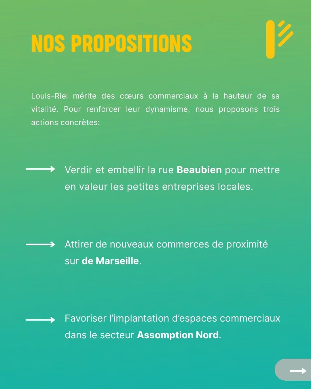 Enfin, nous souhaitons favoriser l’implantation d’espaces commerciaux dans le secteur Assomption Nord. C’est un territoire en pleine transformation qui mérite de devenir un lieu dynamique, avec des services adaptés à nos besoins d’aujourd’hui et de demain.