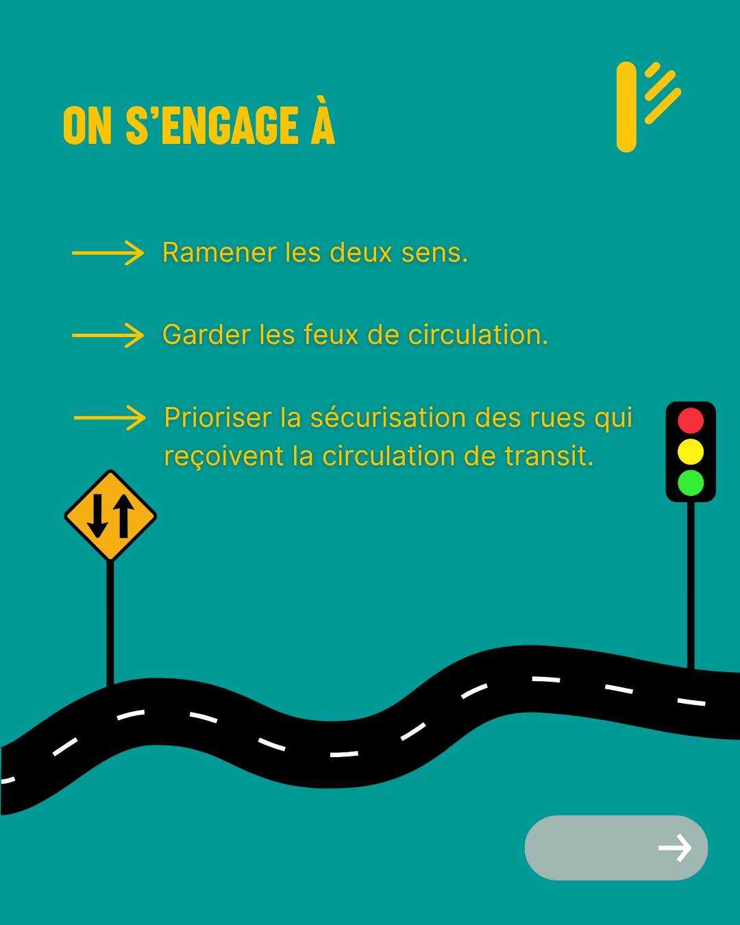 ✅ Prioriser la sécurisation des rues qui reçoivent la circulation de transit et poser les gestes nécessaires pour garantir la sécurité de l’ensemble des usagers de l’intersection.