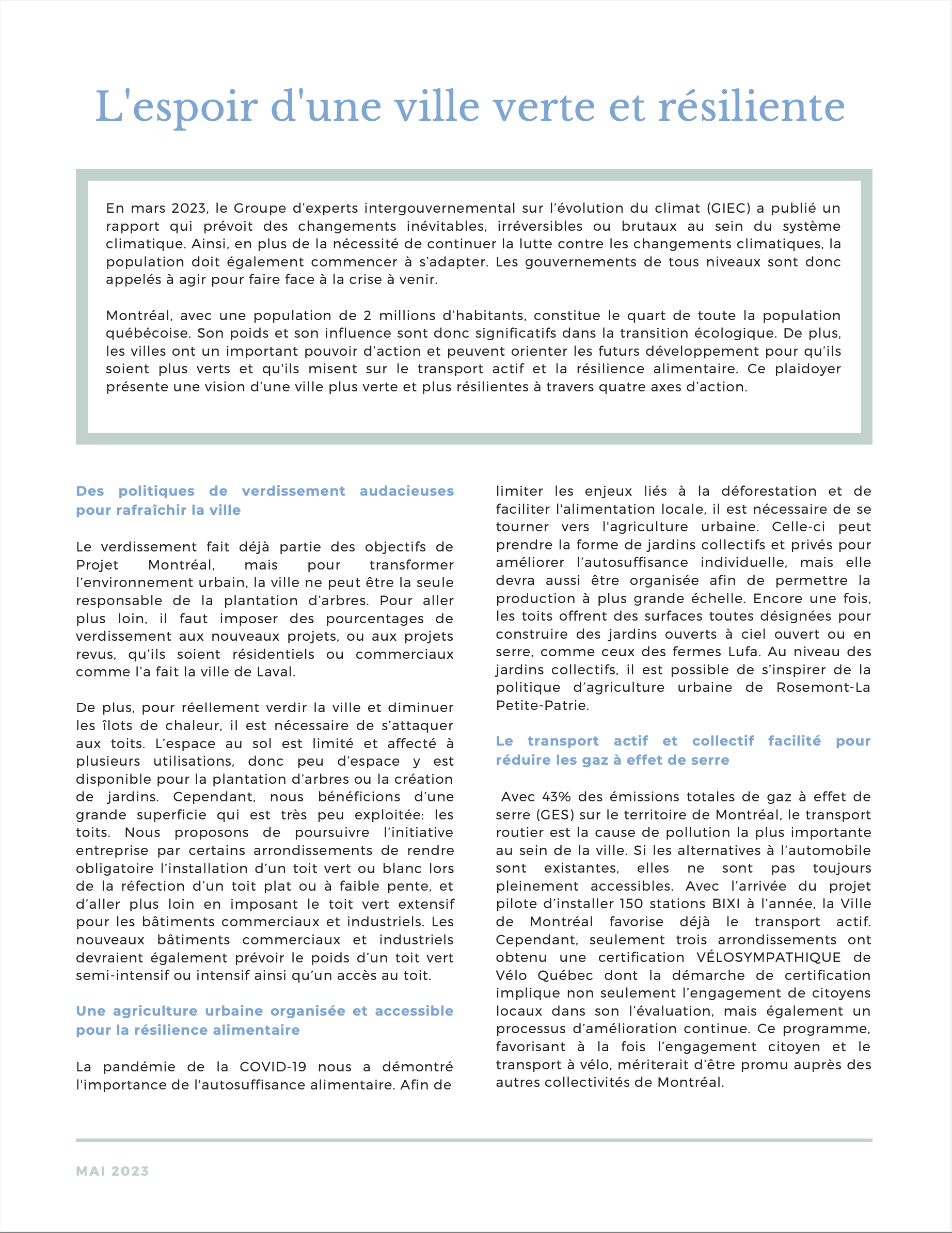 Projet Montréal et le comité Jeunes de Projet Montréal ont l'honneur de vous annoncer le projet gagnant du Concours Mon projet pour Montréal.