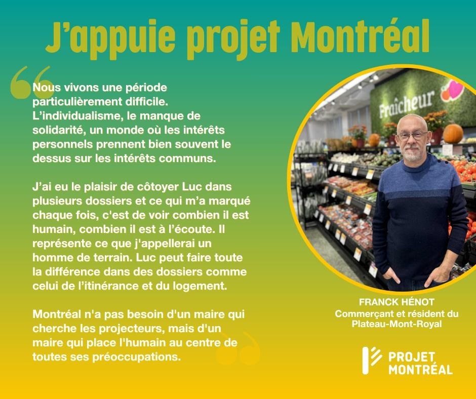 Pour la mairie de Montréal, je soutiens Luc Rabouin, un leader solide qui a toujours à cœur le bien de notre ville.