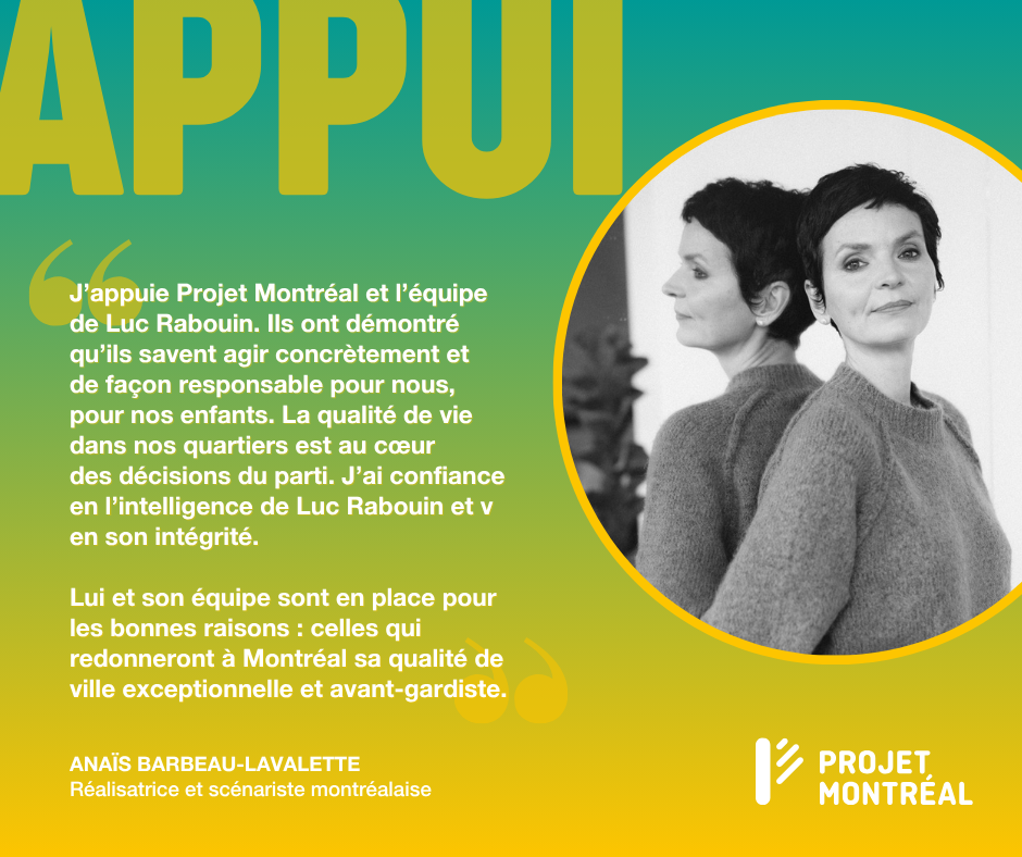 It is essential to choose a mayor who looks to the future, not the past. Therefore, I wholeheartedly endorse Luc Rabouin for mayor of Montreal. »